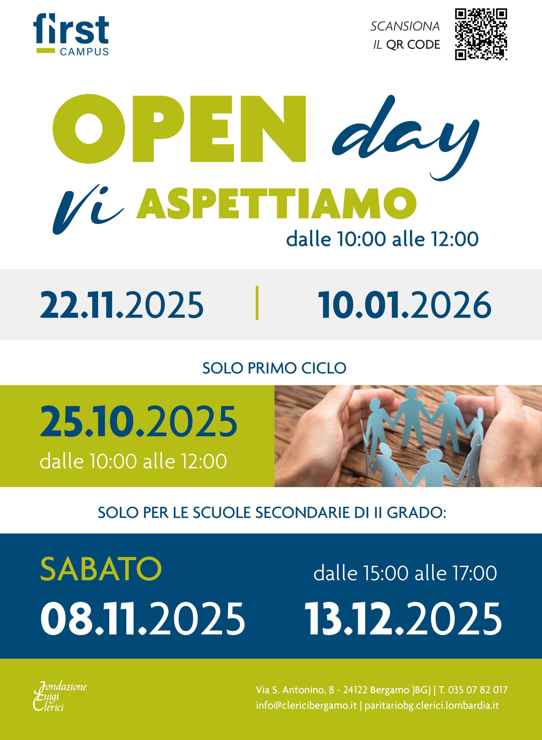 First Campus Bergamo di Fondazione Luigi Clerici, in collaborazione con Suore Sacramentine offre allo studente un’opportunità unica nella vita.